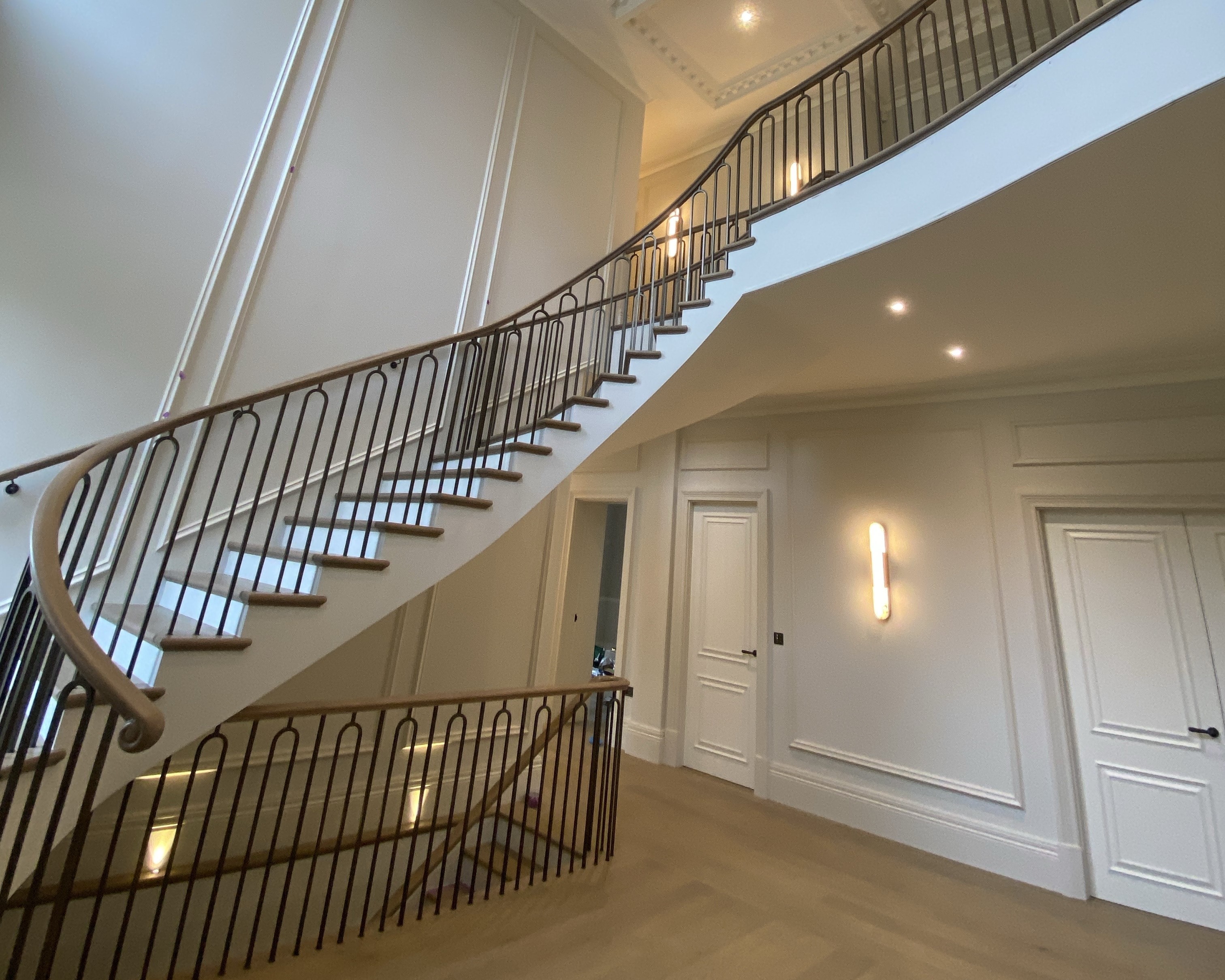 Using 3D modelling, WMA were able to realise the clients dream staircase which ascends in an eye catching sweep creating drama from the first moment a visitor enters the house.